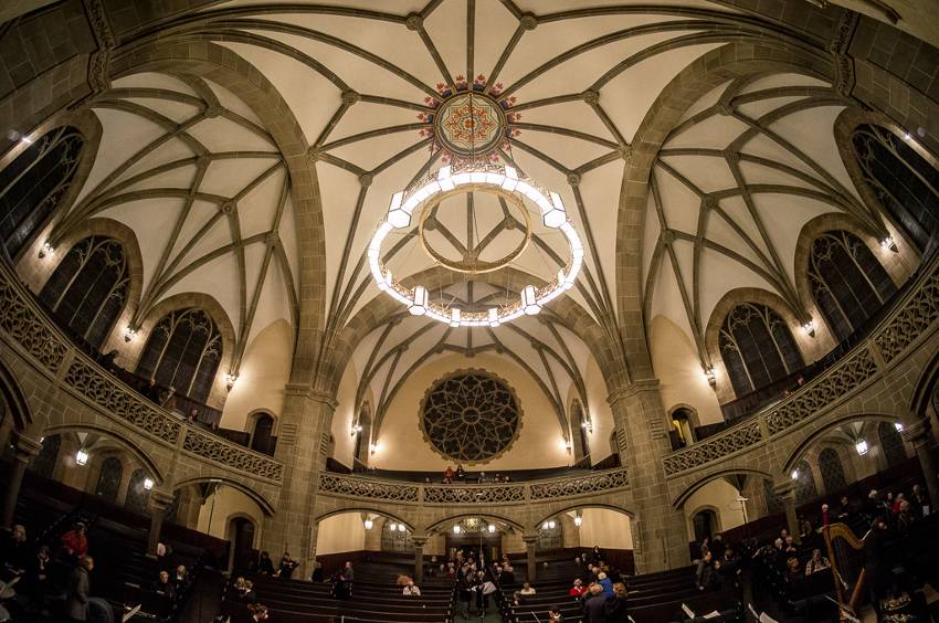 Deshalb wurde dem Rundbau der Vorzug gegeben: Die Feier des Abendmahls sollte sich inmitten der Gemeinde vollziehen. Der Altar wurde zum Mittelpunkt. Die Kanzel, als Ort der Predigt von Christus, wurde ebenso zentral hinter dem Altar angebracht.